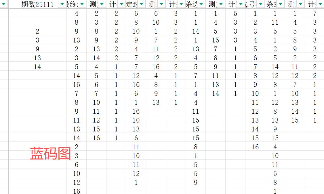 首先可以看一下蓝码的对比结果通过两个图表数据的对比,我们把蓝码的范围确定为2 3 9 13 14