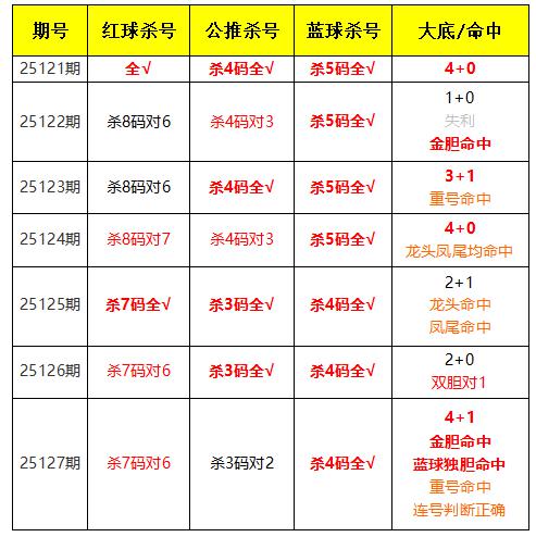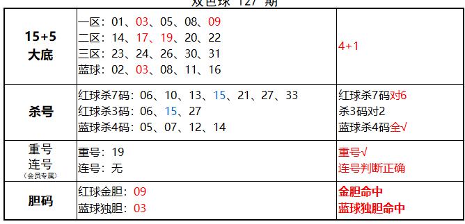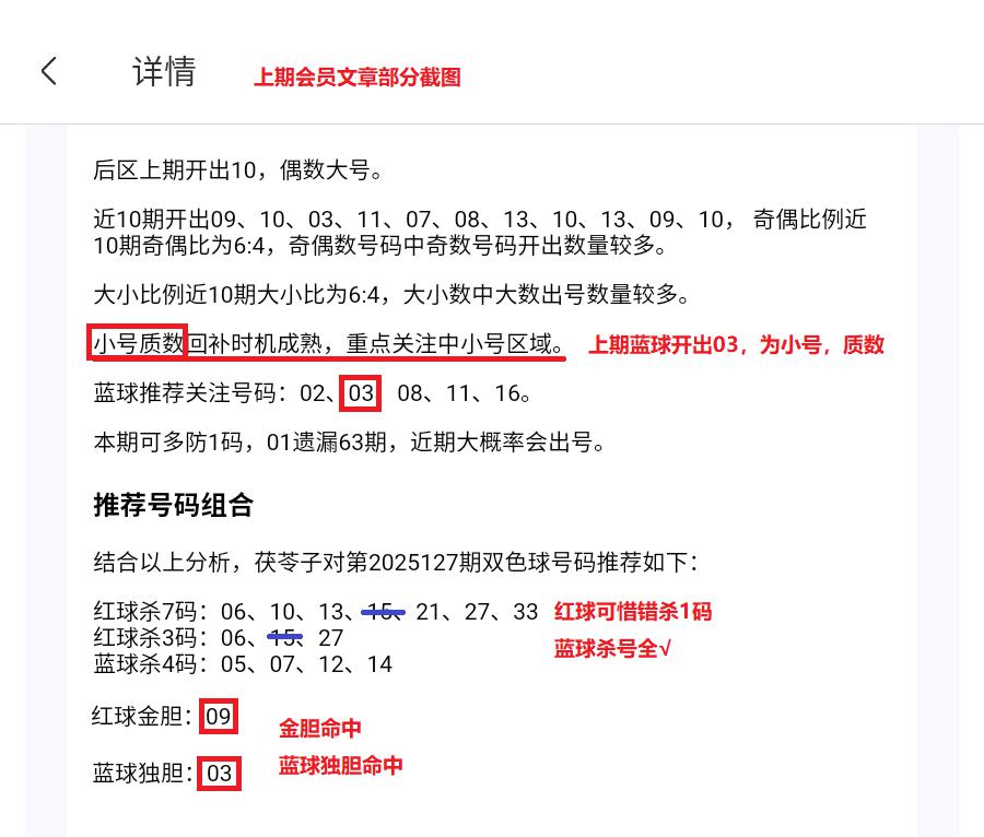 上期红球杀7码对6,免费文章杀3码对2,蓝球杀4码全对,红球金胆命中,蓝球独胆命中。