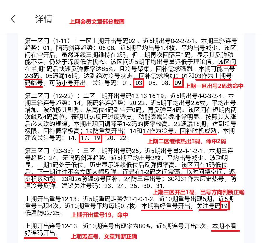 *注:区间详细分析,龙头,凤尾,胆码推荐为会员文章专属。