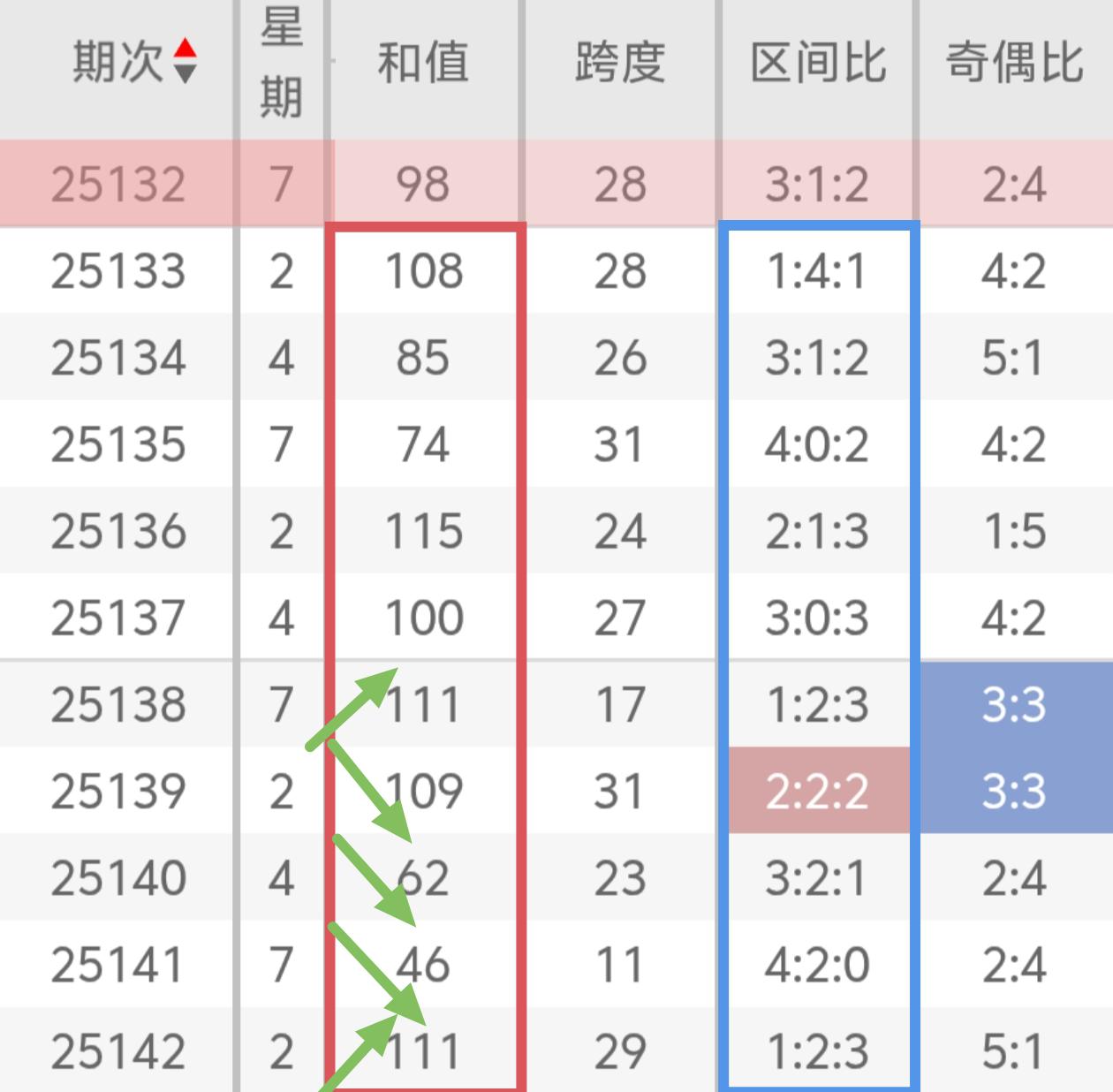 >二区314101022222,二区多以2枚出号,上期开出2枚号码,本期建议增加或保持现有出号。三区221223332103,三区多以2枚号码开出为主,上期开出3枚号码,本期建议减少出号。综合考虑,本期红球区间比重点关注1:3:2,2:3:1,2∶2∶2