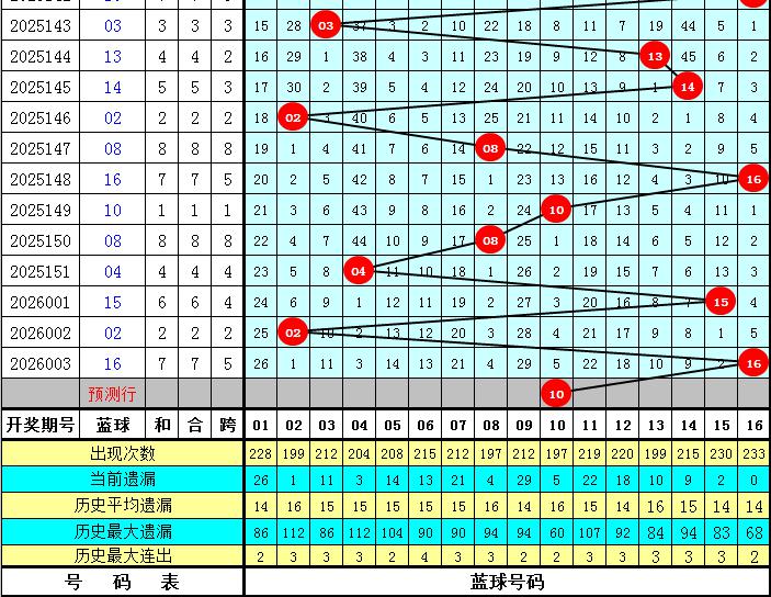 上期开奖:福彩双色球第2026003期奖号为:050609212830+16,红球012路比为4:1:1,包含连码:0506,开出2个重号:05、30。