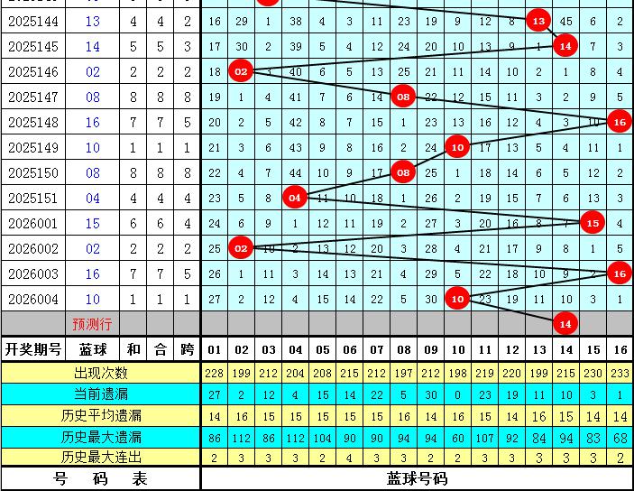 前九周星期日开出8个蓝球号码,蓝球以冷码为主,热码蓝球开出相对较少,还没有出现的蓝球为:01、04、05、07、09、12、14、16,共8个,本期防近几周星期日没有开出的冷码蓝球回补,参考蓝球号码14。