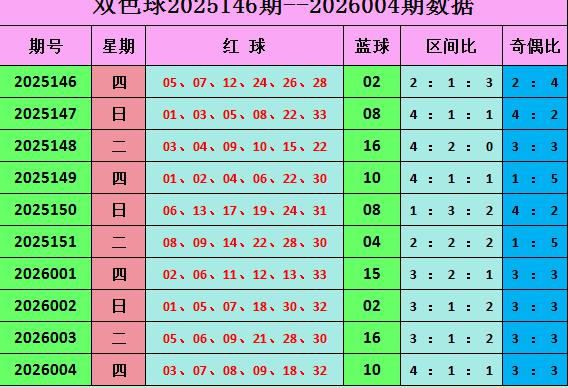 双色球第2026004期开奖:本期开奖号:030708091832。蓝球:10,奇偶比为3:3。