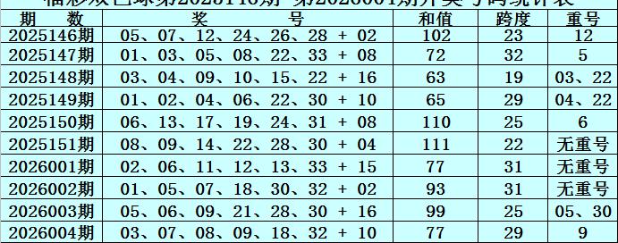 红球跨度分析:上期红球跨度为29,为高位跨度(跨度>28),近期高位跨度走势明显,本期注意跨度继续在高位开出,参考跨度29。
