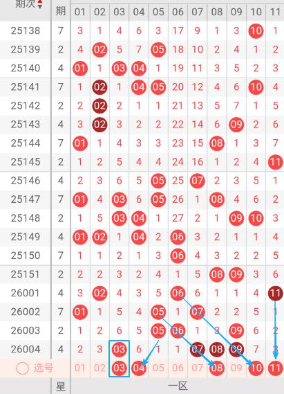 红球:03,04,08,10,11,15,17,19,20,22,24,25,26,27,31