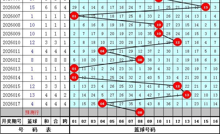 蓝球分析:第2026017期开出蓝球04,最近10期蓝球号码遗漏期数分别为:2期、0期、24期、10期、12期、5期、0期、4期、22期、5期,第2026018期蓝球注意02-08段出号,重点关注2路蓝球,参考蓝球:08。