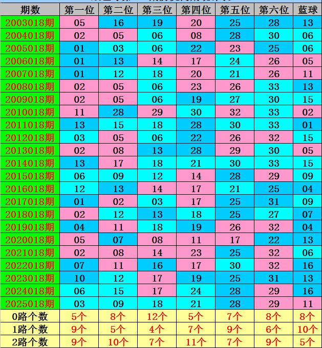 第二位:历史同期0路红球开出:03、09、12、15;1路红球开出;07、13、16、28;2路红球开出;02、05、08、11、17,红球012路个数比为8:5:10,当前2路红球历史同期轮空3年,今年同期注意2路红球出现,参考号码11。