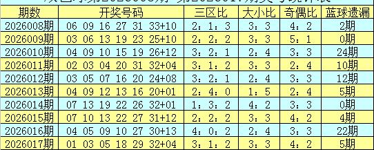 红球三区比推荐:最近3期红球三区比分别开出2:2:2、4:0:2、3:1:2,3期红球三区比总比例为9:3:6,本期预计红二区号码走势活跃,防红三区号码走冷断区,三区比参考2:4:0。