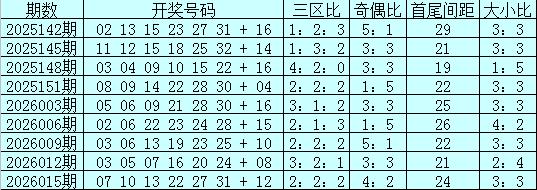 上期开奖:福彩双色球第2026017期奖号为:010305182932+04,其中红球三区比为3:1:2,奇偶比为4:2,首尾间距为31,大小比为3:3。