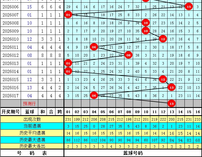 蓝球分析:最近9周星期二蓝球分别开出号码:16、14、16、04、16、15、10、08、12,本周星期二看好出现大号蓝球,参考蓝球号码13。