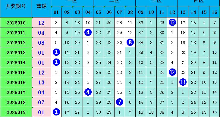 蓝球:前10期蓝球分别为:12040801011213040701,其中奇偶蓝球奇偶数球均等,本期看好偶数蓝球,参考蓝球14.