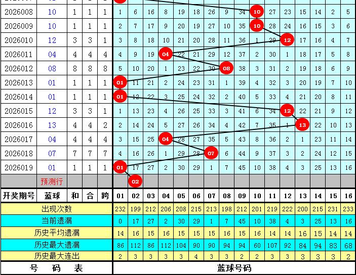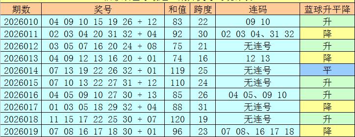 蓝球分析:上期蓝球开出号码01,下降6个点位,最近10期蓝球号码升平降分别为:升、降、升、降、平、升、升、降、升、降,本期防蓝球号码上升,一码蓝球关注02。