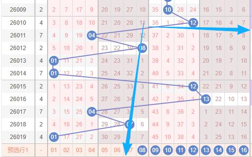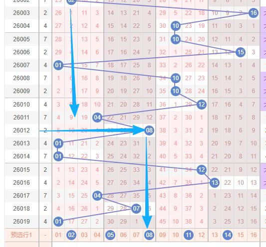 假设本期蓝球出2路球数字,还有出08到16这个区域的数字的话,那么本期蓝球范围就是11和14。