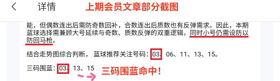 上期和值、三区比均命中,会员文章中三码围蓝命中,大底命中2+1,本期再接再厉!