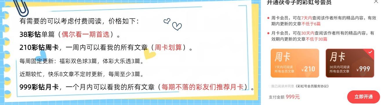当然,免费文章每期仍会赠送大家大底和杀号。