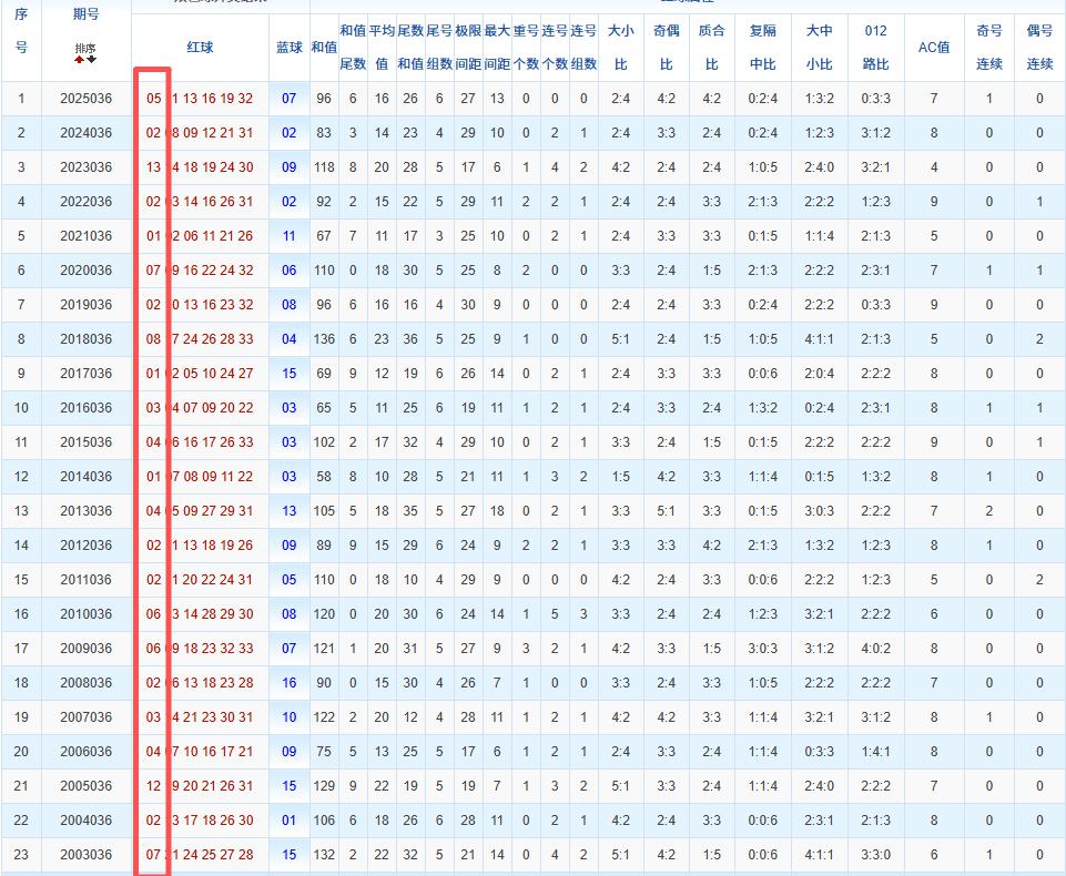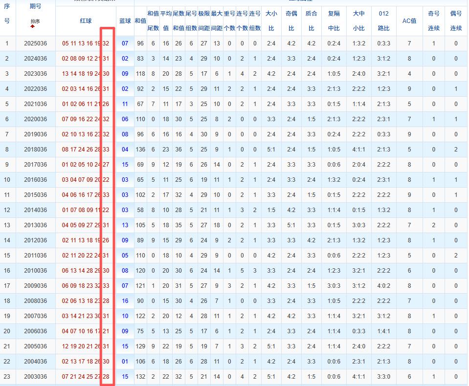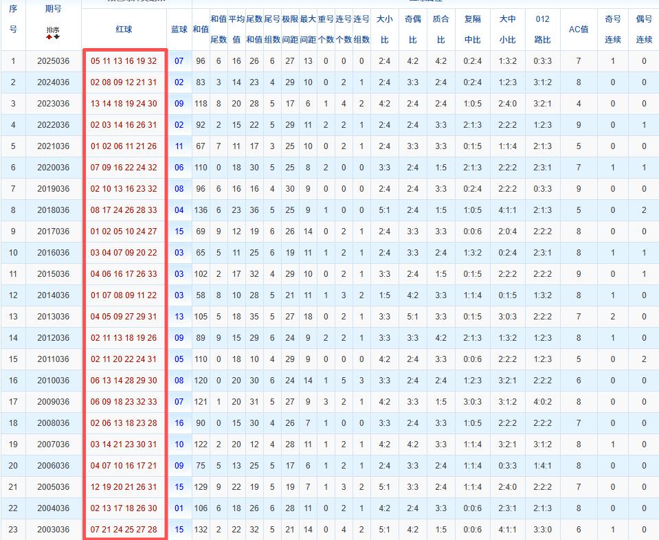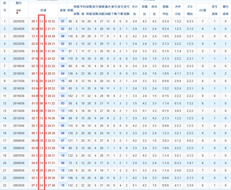 通过观察,我发现双色球往年同期的开奖数据与本期号码之间存在显著关联。具体来说,在红球中,从第一位至第六位,通常会有约4个位置上的数字与往年同期相同位置的号码一致;而蓝球号码中,也有多期开奖结果直接包含了往年同期的数字。因此,我们可以借助往年同期各位置上的号码,作为分析本期开奖情况的重要依据。在此基础上,还可结合往年同期的其他相关条件,进行综合性的号码组合推荐。