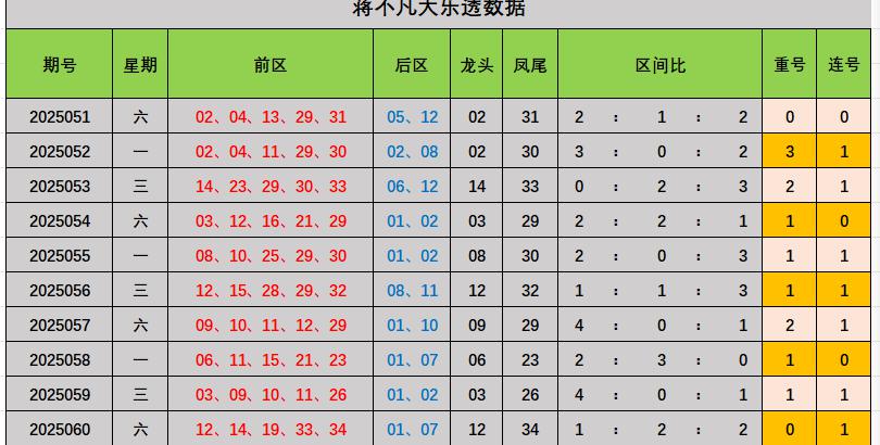 大乐透25061期 本预测区间比为221。