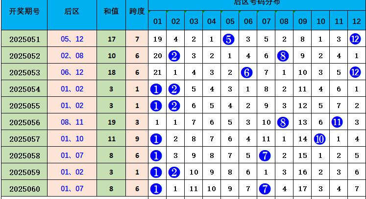 一区(01-12):上期开出1个奖号。最近10期该区开出21个号码,总体表现较热。本期该区关注2个号码05,09。