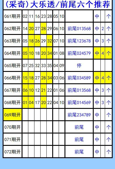 大乐透第069期图文(采奇坐标),前尾六个推荐