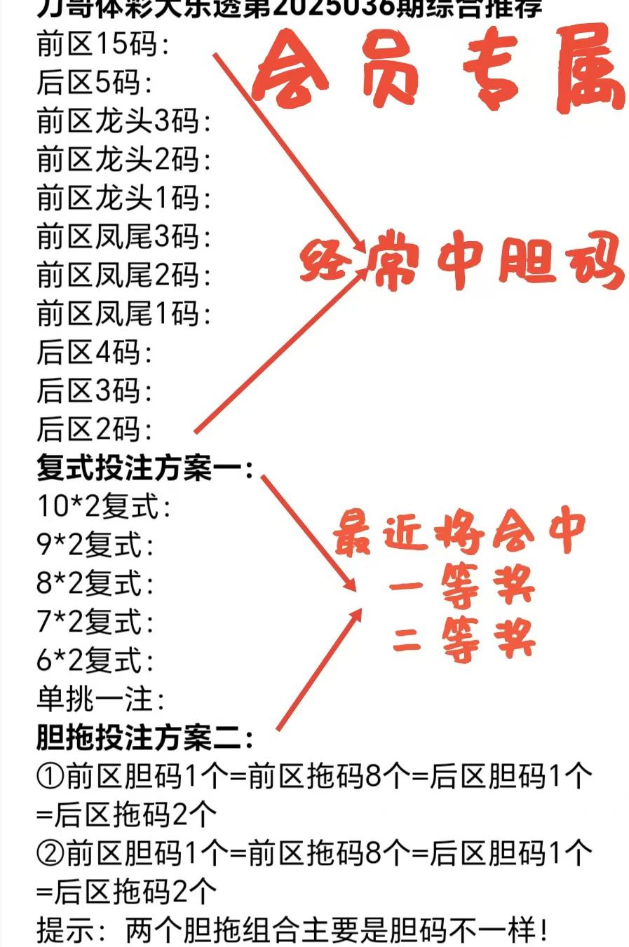 刀哥会员文章的精选内容,价值满满!但只有长期跟单,才能稳稳抓住盈利时机,要是三天打鱼两天晒网,很可能错过大肉行情。大家可按需自主选择,也欢迎参考我的免费文章 ,多一种思路,多一分收获。祝大家都能在体彩大乐透里收获好运,多多中奖!