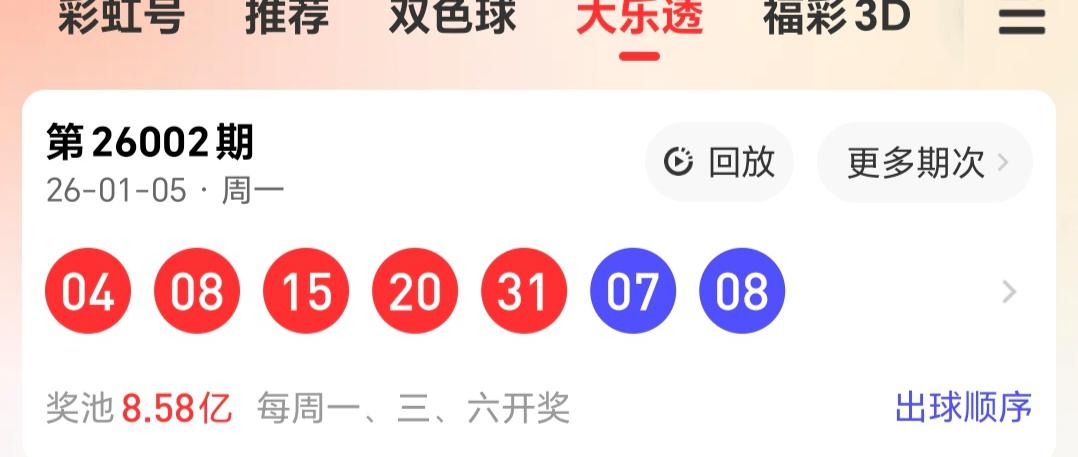 大乐透26003期 刀哥,上后区5码围中07,前区围中04 31