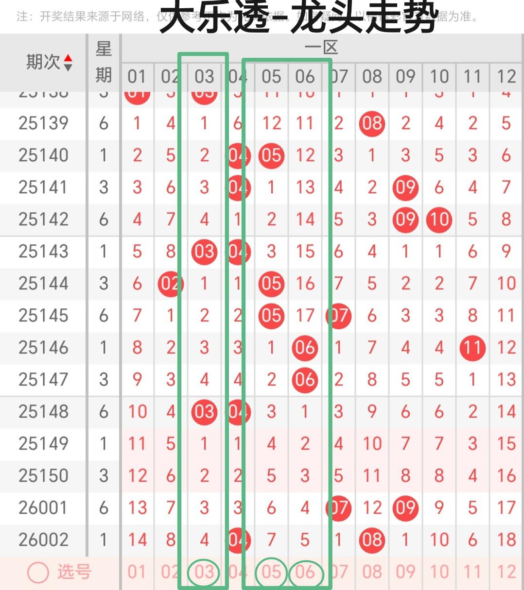 二、体彩大乐透第2026003期前区龙头凤尾分析