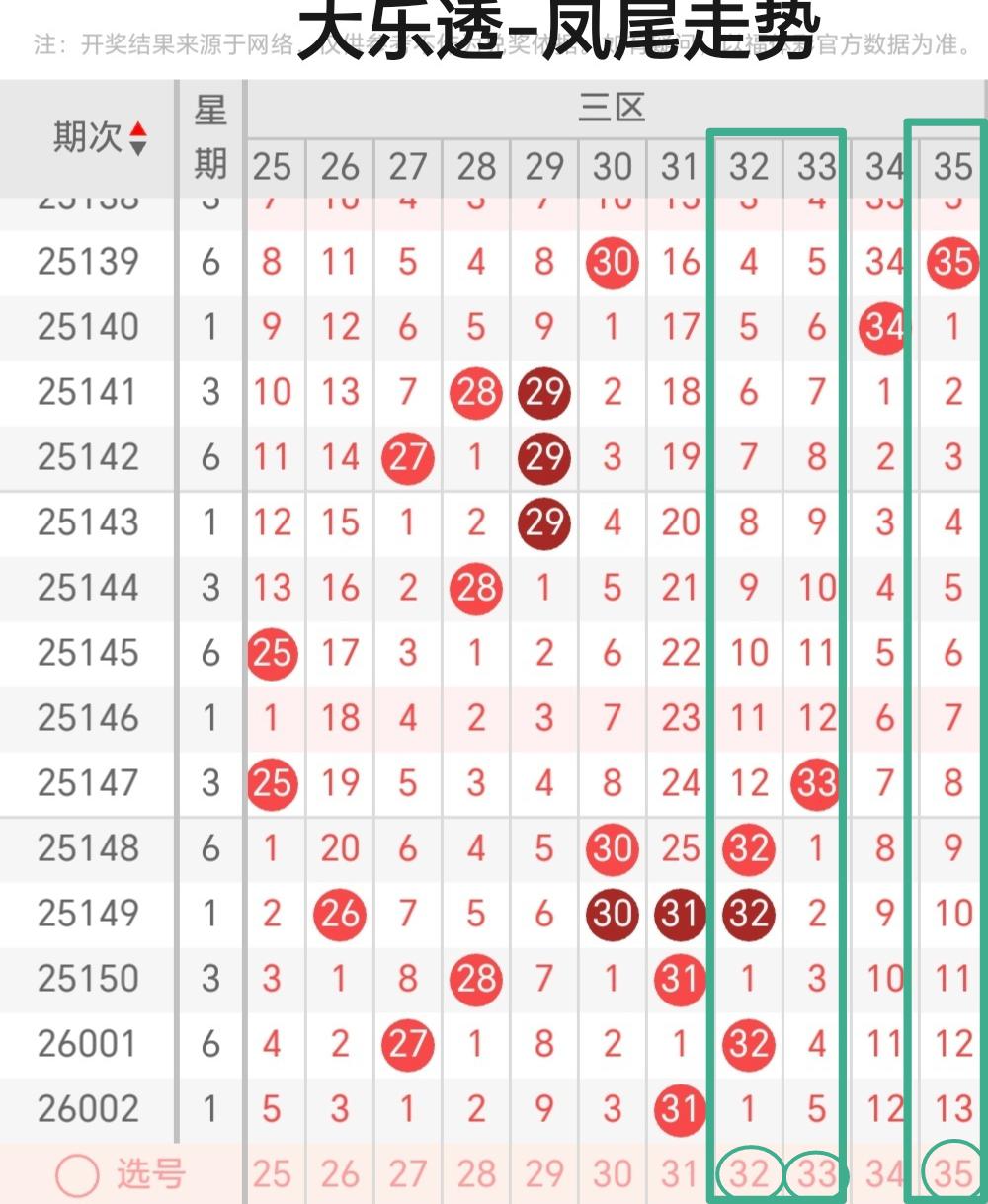 002期龙头单挑中32,凤尾3码中31,后区2码命中07
