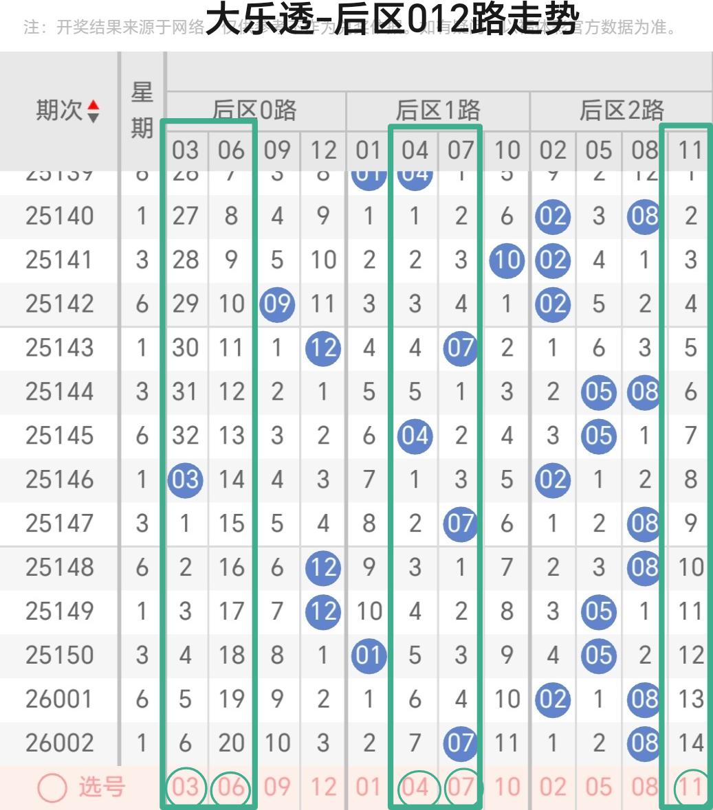 三、体彩大乐透第2026003期后区012路走势分析