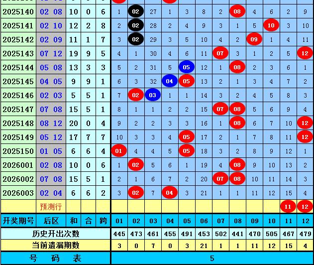 后区分析(定义:01-04为一区,05-08为二区,09-12为三区):上期后区开出奖号02和04,全在第一区出现,最近10期后区三个区间落号个数比为7:11:2,本期后区看好第三区号码大热,注意两码11、12。