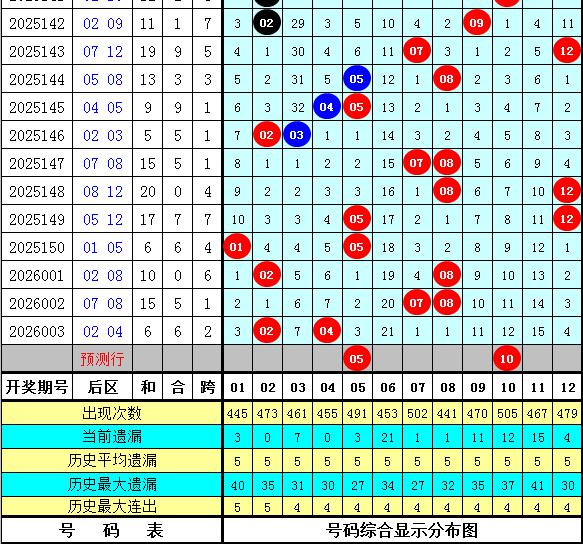 在历史同期开奖中,后区号码和值奇偶为9:10,基本持平,本期看好奇号和值出现,参考和值15。