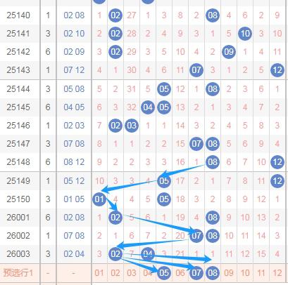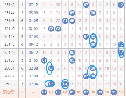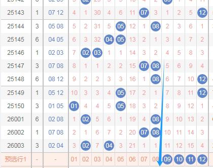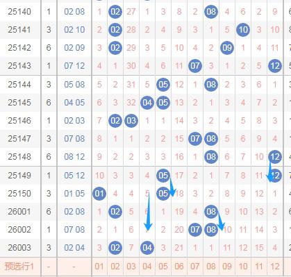 那么根据上面的分析,体彩大乐透第2026004期后区可以得到这些数据: