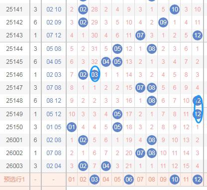 上图是体彩大乐透后区开奖号码分布走势图,我在上面走势图中标注出来的数字03 06 09 12都是0路球数字,除以3余数是0的叫做0路球数字,可以发现0路球数字连续4期没出现号码,看上面标注出来的蓝色圈圈都是0路球数字,可以发现最近0路球出现的少,那么本期个人觉得应该关注0路球数字03 06 09 12出1个或者2个。