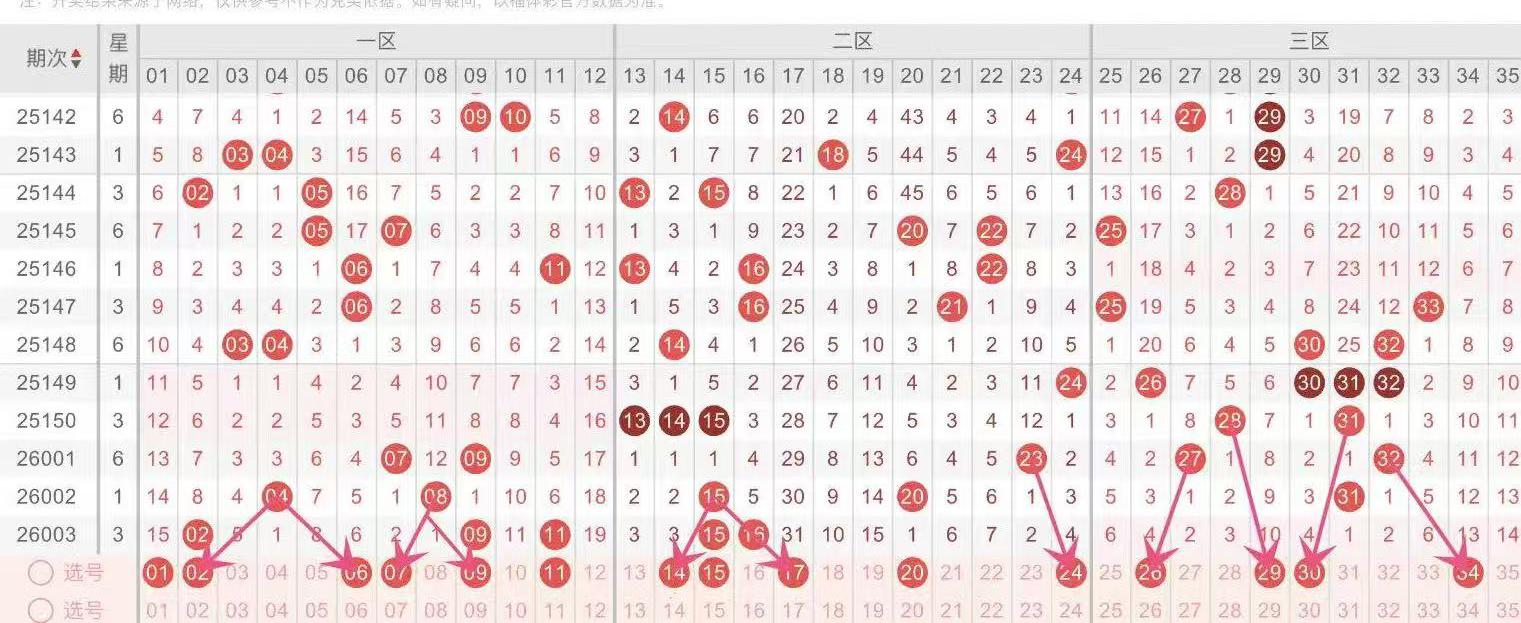 第一组:上期红球三区未出号,本期重点关注该遗漏区间号码回补。