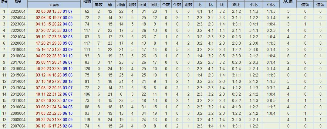 下图为大乐透彩种诞生以来每年的004期各类数据以及历年同日期开奖数据,各位大佬及彩友们请拿走~