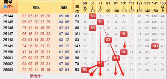 接下来我们来看前区小大、奇偶、质合、和值分布图: