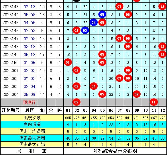 大乐透26005期 后区两码参考一奇一偶,看好组合02和11