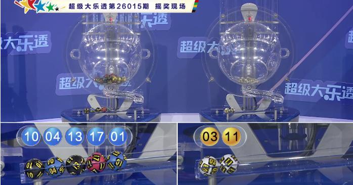大乐透第2026015期奖号开出:0104101317+0311。其中前区三区比为3:2:0,奇偶比为3:2,冷热比为3:2。