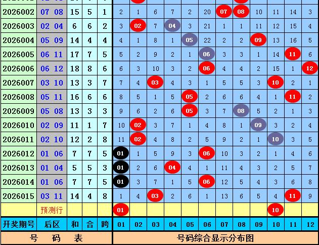 后区分析(一区01-04,二区05-08,三区09-12):上期后区开出奖号03和11,最近10期后区三区落号比为8:13:6,本期后区关注号码01、04、07、08、10,后区两码参考01、10。
