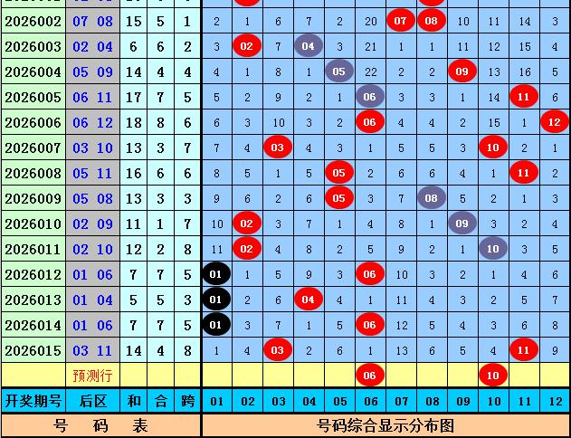 后区号码分析:在第016期历史同期开奖中奖,奖号09出现9次,奖号02061112出现4次,奖号0108出现3次,奖号0410出现2次,奖号030507出现1次。本期后区五码参考02、04、06、08、10。