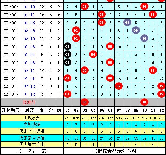 后区分析:最近10周星期三全小开出3次,一大一小开出6次,全大开出1次;全偶开出3次,一奇一偶开出5次,全奇开出2次,本期后区注意两码03+10。