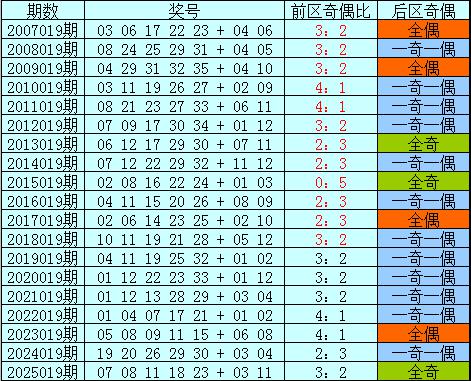 后区分析:在第019期历史同期开奖中,后区奖号奇偶比为18:20,最近5年同期后区奇偶走势为:一奇一偶、一奇一偶、全偶、一奇一偶、全奇,今年同期预计再出全奇组合,参考号码09、11。