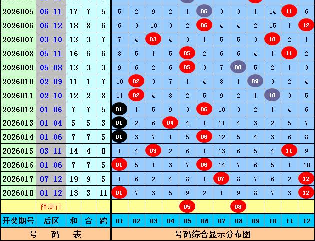 后区分析:上期后区为一奇一偶号码01+12,最近10期后区号码奇偶比为10:10,最近50期后区奇偶比为50:50,本期后区参考一奇一偶组合,关注两码05、08。