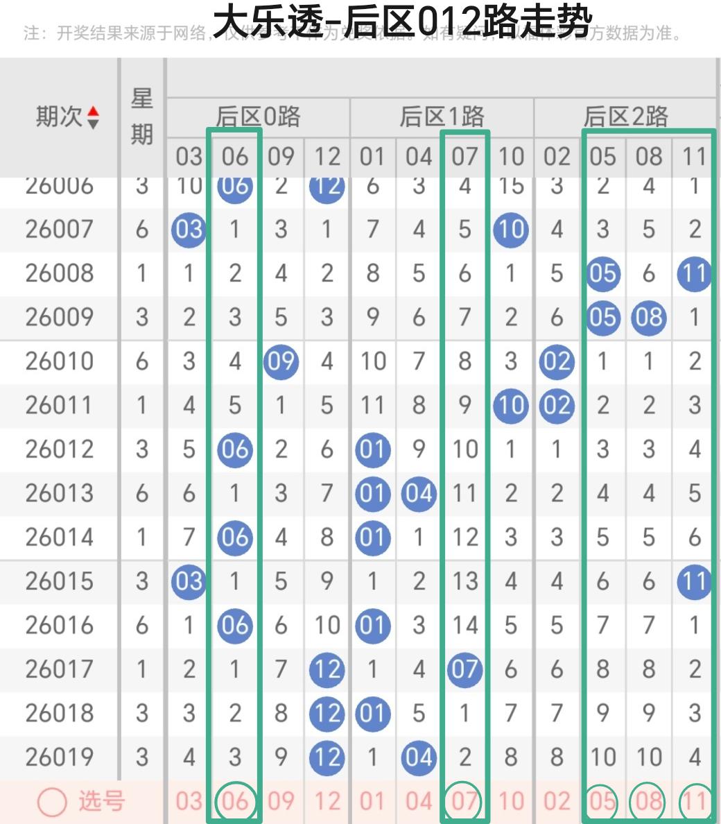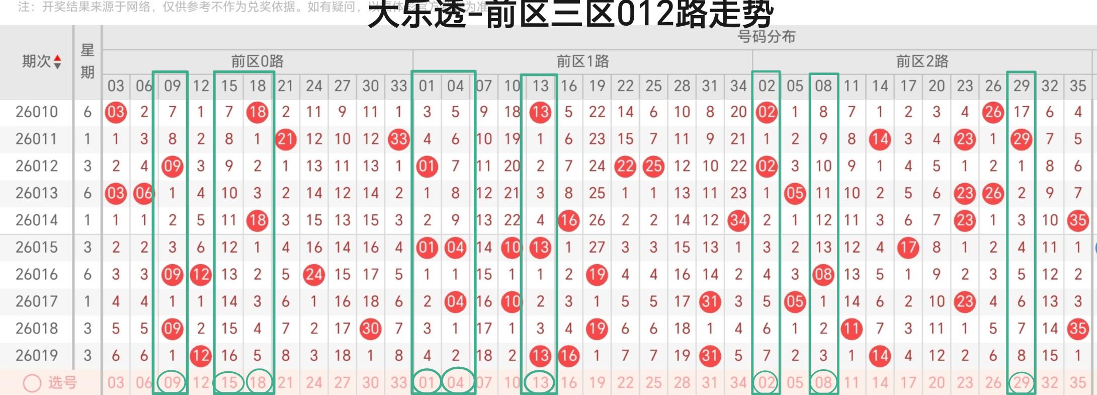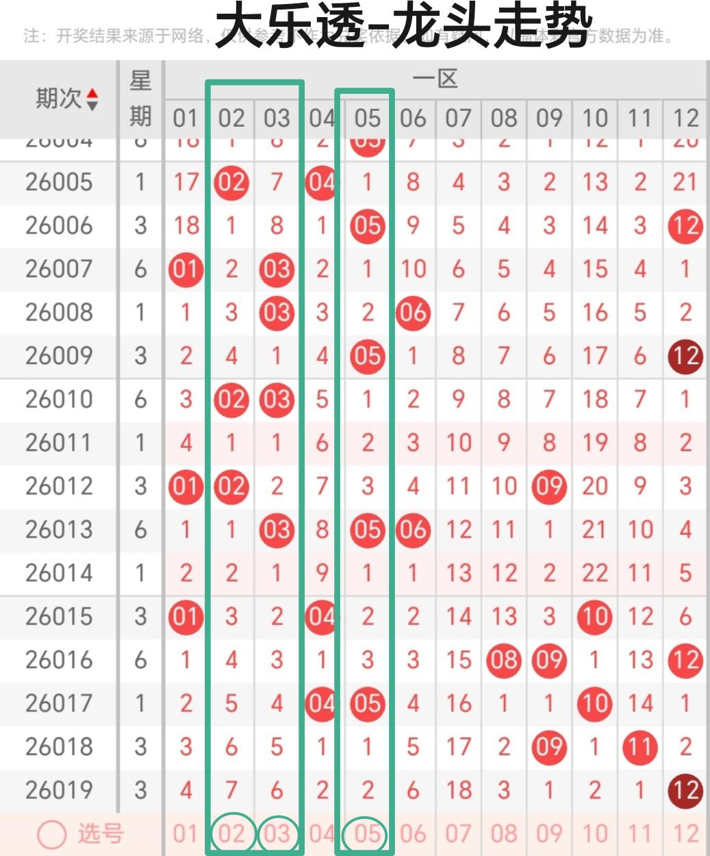 二、体彩大乐透第2026020期前区龙头凤尾分析