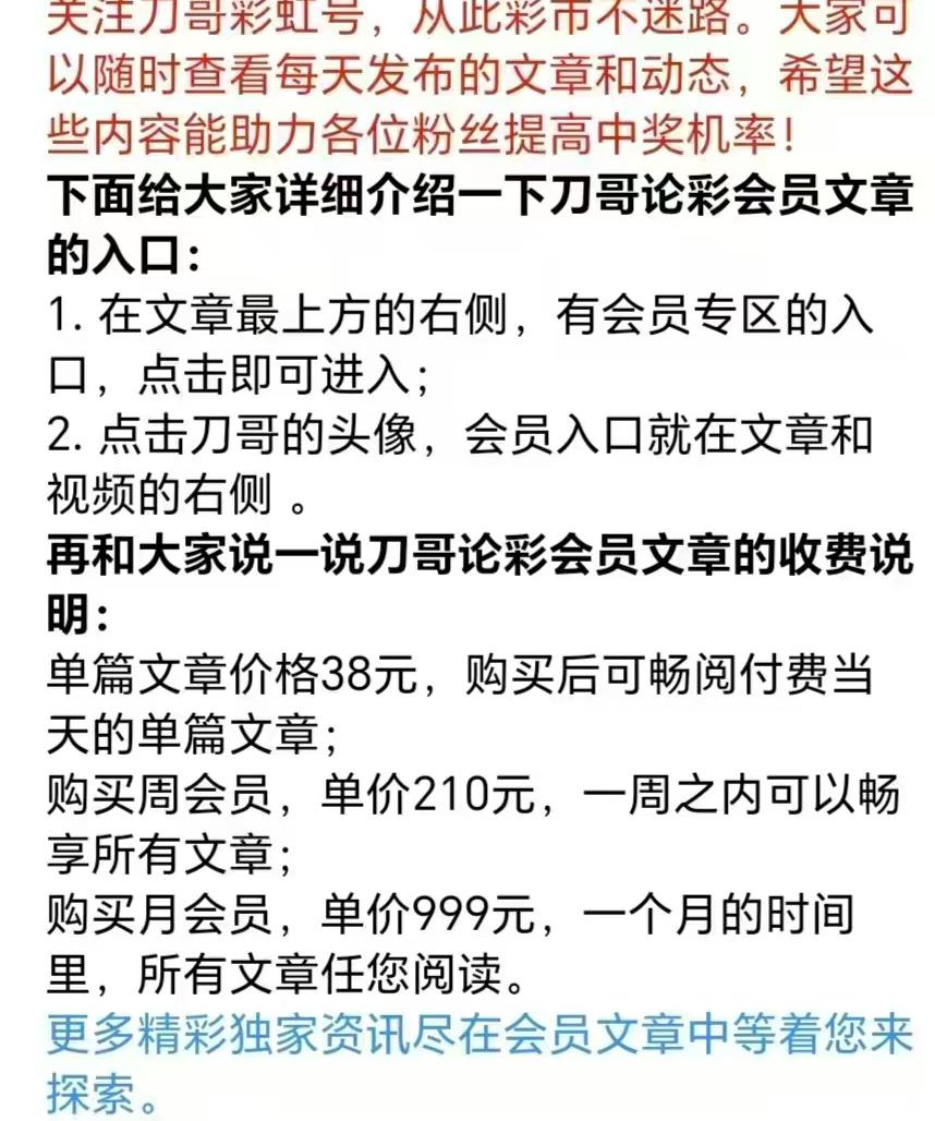 刀哥会员文章的精选内容,价值满满!但只有长期跟单,才能稳稳抓住盈利时机,要是三天打鱼两天晒网,很可能错过大肉行情。大家可按需自主选择,也欢迎参考我的免费文章 ,多一种思路,多一分收获。祝大家都能在体彩大乐透里收获好运,多多中奖!