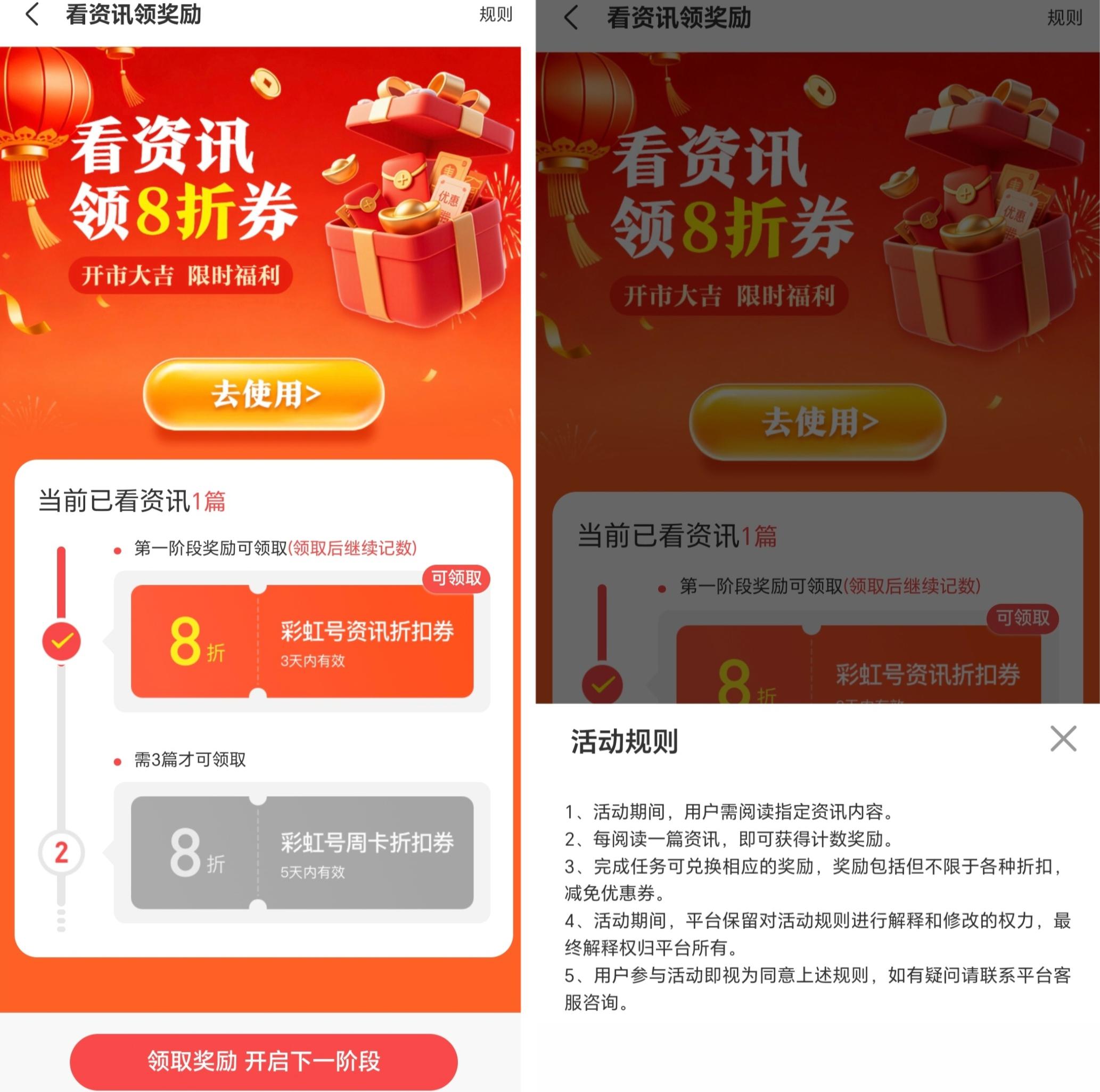 再阅读2篇领彩虹号会员月卡8折优惠券