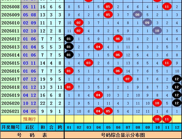 后区分析(一区01-04,二区05-08,三区09-12):上期后区开出奖号04和05,最近10期后区三区落号比为9:13:6,本期后区关注号码01、02、03、10、11,后区两码参考10、11。