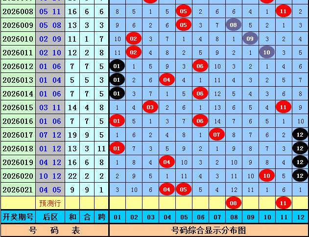 后区分析:上期后区开出1路+2路号04和05,最近30期后区奖号012路比为19:18:23,最近10期后区奖号012路比为8:10:2,本期后区注意号码02、08、10、11、12,单挑两码组合08、11。
