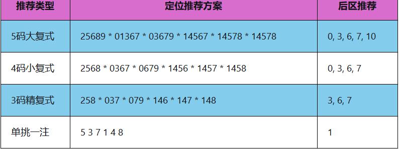 近10期后区012路比为6:3:1,0路号码依然保持最强热度,但1路号码开始回补。