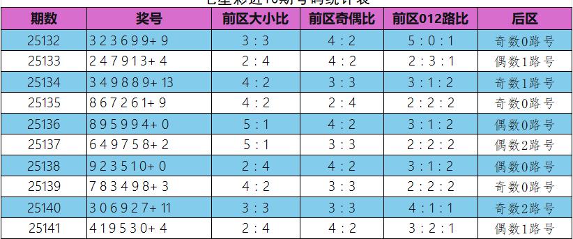 大数总个数35个,小数25个,大数优势明显。但近两期大小比均为3:3,显示大数热度可能暂时放缓。