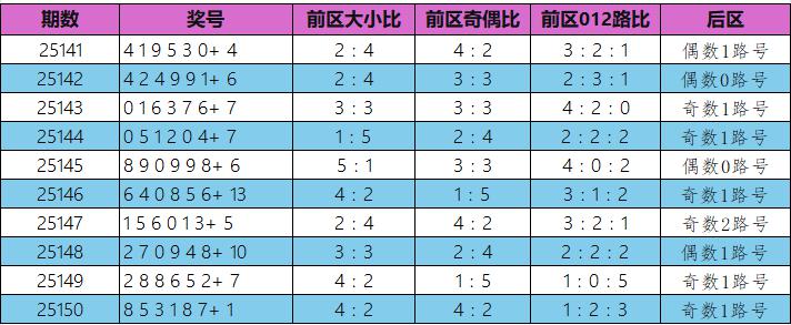 上期(150期)关键数据:奇偶比4:2(奇数占优),大小比5:1(大数极端),012路比2:2:2(实现理论均衡)。